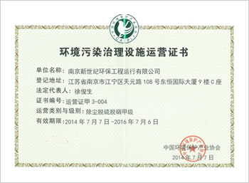 鎮(zhèn)江江南環(huán)保工程運(yùn)行有限公司成立:從事后續(xù)裝置運(yùn)行及副產(chǎn)品硫酸銨的銷售,同年12月獲得環(huán)境設(shè)施甲級(jí)運(yùn)營(yíng)資質(zhì),現(xiàn)更名為南京新世紀(jì)環(huán)保工程運(yùn)行有限公司。