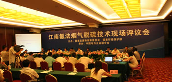 “氨法脫硫技術(shù)現(xiàn)場(chǎng)評(píng)議會(huì)”召開:由中國(guó)電力企業(yè)聯(lián)合會(huì)組織、國(guó)家發(fā)改委環(huán)資司、國(guó)家環(huán)保部科技司等主管部門及五大電力集團(tuán)參加的江南氨法脫硫技術(shù)現(xiàn)場(chǎng)評(píng)議會(huì)廣西南寧隆重召開,9位專家組成的專家組經(jīng)考察評(píng)議認(rèn)為,氨法脫硫技術(shù)是一項(xiàng)真正可實(shí)現(xiàn)循環(huán)經(jīng)濟(jì)的綠色脫硫工藝,尤其適宜于燃煤含硫量高的電廠鍋爐和工藝爐窯煙氣脫硫新建及改造項(xiàng)目。